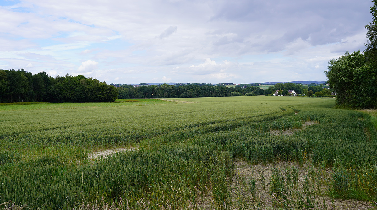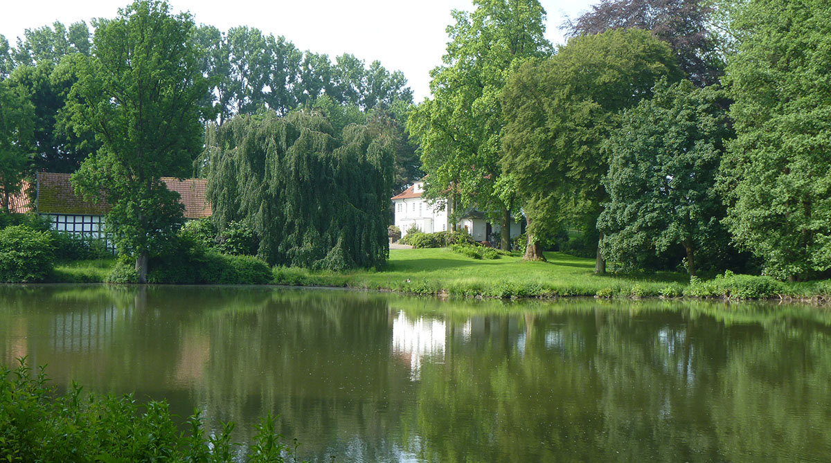 Direkt am „Roten Kotten“ (der nicht mehr rot ist) steht eine Bank. Von hier aus ergibt sich ein wunderbarer Weitblick: über das Enger Bruch, die Niederung der Else bis hin zum Wiehengebirge, das 15 Kilometer Luftlinie entfernt ist. Ein Kotten ist ein Wohngebäude, das früher für unselbständige Bauernfamilien auf dem Grund eines größeren Hofes standen. Jahrhundertelang wohnten hier die „Kötter“, deren Pacht jederzeit auslaufen konnte. Neben den Diensten beim Haupthof hatten die Familien kleine, selbst bestellte Flächen, wenig Vieh. Die verbreitete Armut wurde lange durch Heimweberei, Zigarrendrehen und ähnliche Arbeiten einigermaßen ausgeglichen.
