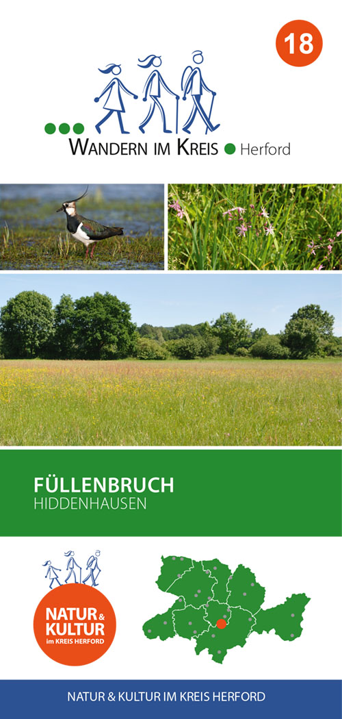 Fotos: Kiebitz © Angelika Meister, Kleinbahn © Gemeinde Hiddenhausen, Sumpfdotterblume © Katja Heidbreder, Flug-Plakat © Herforder Kreisblatt, alle anderen ©Biologische Station Ravensberg