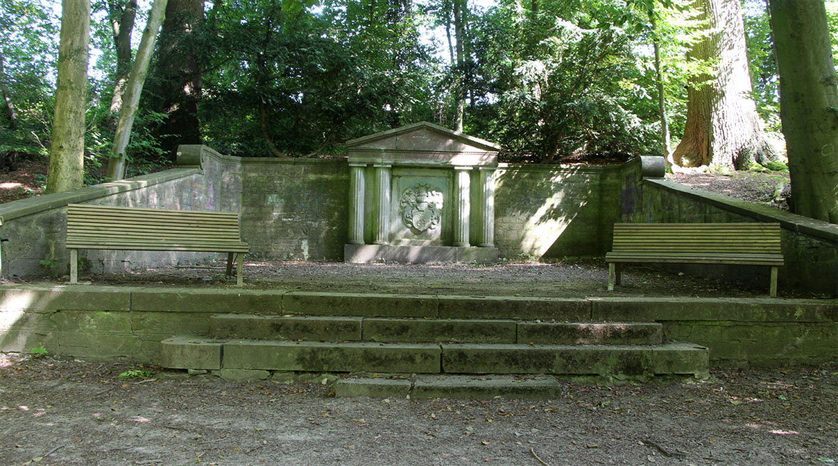 Wohlhabende, adlige Familien genießen seit mehr als 200 Jahren das Privileg, abseits der herkömmlichen Friedhöfe eigene Begräbnisstätten anzulegen. An die früheren, adligen Besitzer der Mühlenburg erinnert dieses mächtige Familiengrab, weiträumig auch „Erbbegräbnis“ genannt.