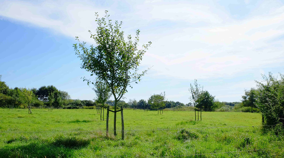 Streuobstwiesen sind ein wichtiger Bestandteil in der Kulturlandschaft des Ravensberger Hügellands. Dienten sie früher noch der Ernährung der Bevölkerung, verschwinden sie heute immer häufiger aus der Landschaft, weil die Pflege aufwendig ist. Um diesem Trend entgegenzuwirken, werden sie gerne als Ausgleichsmaßnahmen für Eingriffe in die Landschaft angelegt. Das Obst schmeckt nicht nur den Menschen, sondern dient auch den Wildtieren als Nahrung. Der Obstbaum kann mit zunehmendem Alter zum Lebensraum für totholzbewohnende Tierarten werden und Höhlenbrütern wie dem Steinkauz dienen.