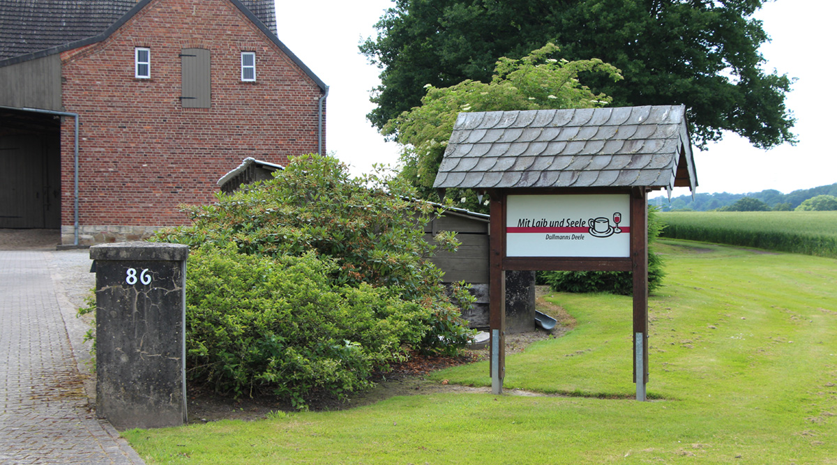 Die Hofgebäude der Familie Dallmann sind zwar erst 1895 erbaut, am Standort wird aber schon seit 1556 gewirtschaftet. Der Hof entwickelte sich zu einem großen Betrieb mit Ackerbau und Schweinehaltung. 2006 wurden die Tiere abgeschafft, Getreide und Zuckerrüben bilden die Grundlage der Landwirtschaft. Als die ausgedehnte Deele nicht mehr benötigt wurde, kam es 2001 zu Umbau und Umnutzung. Heute können bis zu 130 Personen hier feiern - die Neuausrichtung ist geglückt: Sicherung der Bausubstanz und eine Diversifizierung des Einkommens. Die lange Deele erstrahlt in neuem Glanz, das schöne Fachwerkgebäude ist mit neuem Leben gefüllt.