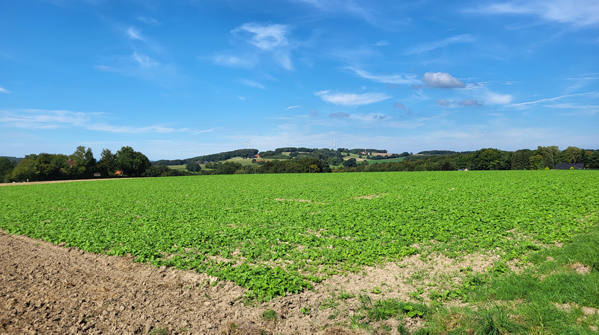 Herford liegt an der Grenze zwischen dem Ravensberger Hügelland und dem höheren Lipper Bergland. Deswegen ist das Wandern hier eine kleine Herausforderung. Immer wieder wird die Mühe belohnt: an vielen Stellen des Weges - so wie hier auf dem Eggeberg beim Sender - ergeben sich reizvolle Blicke in die weite Landschaft.