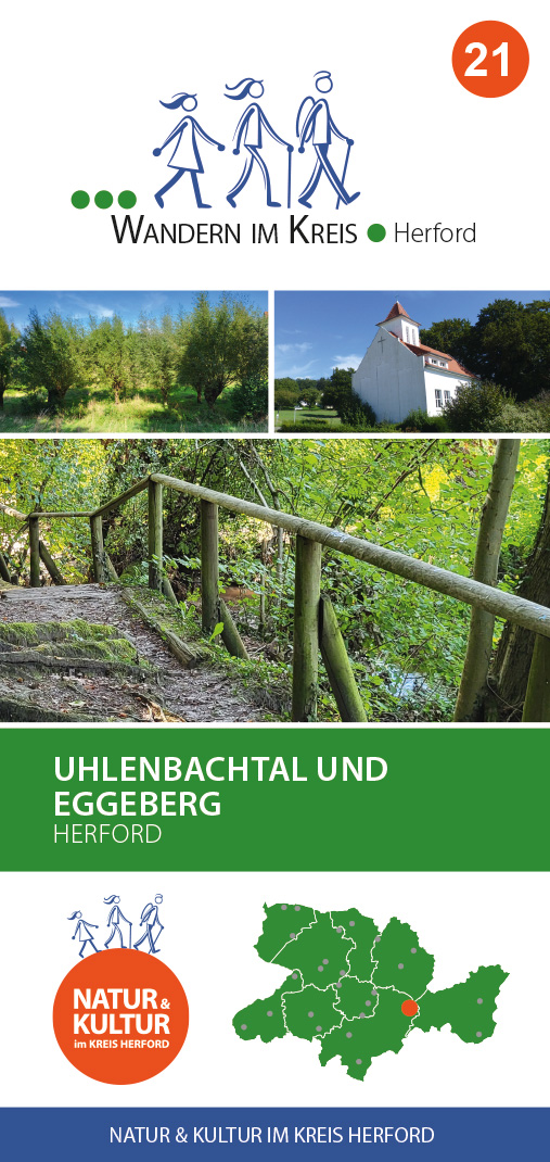 Über den Dächern der Stadt Herford führt der Wanderweg auf den Sender, den „Hausberg“ der Herforder. Entlang von Waldrändern mit schönen Weitblicken senkt sich der Weg mehr und mehr ins Tal. Das NSG Uhlenbachtal mit seinen grünen Wiesen und alten Wäldern liegt zwischen den höher liegenden Äckern, die es dann zum Abschluss der Runde wieder zu erklimmen gilt.