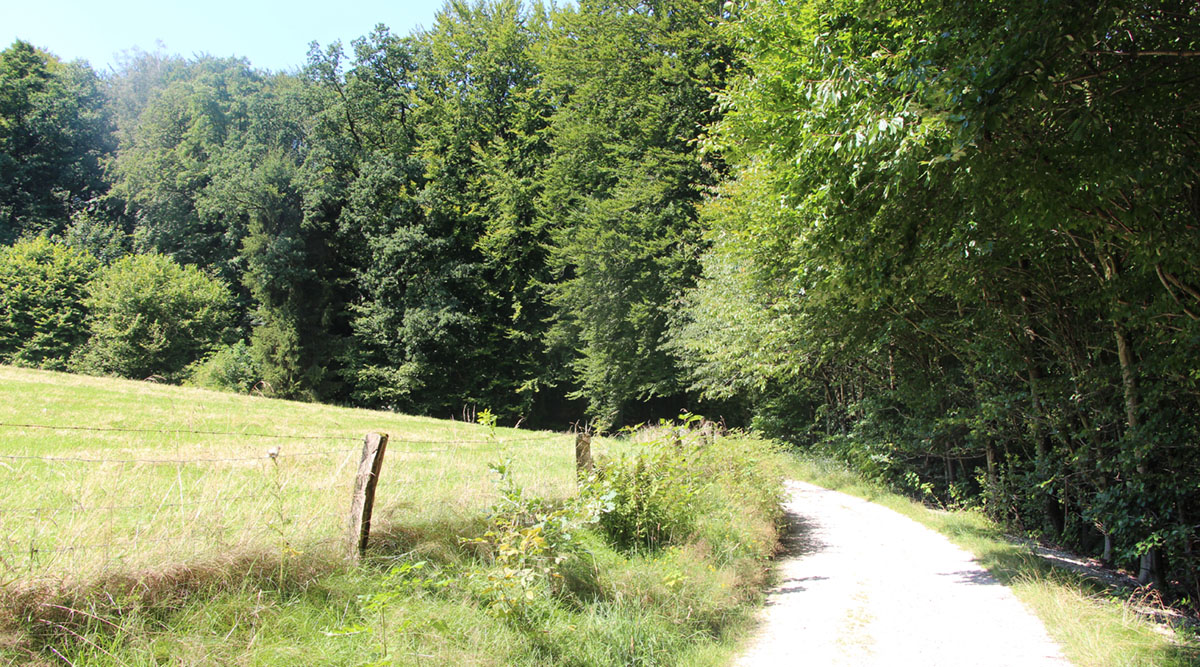Nach Wegabschnitten im Wald ergeben sich streckenweise schöne Weitblicke in die Landschaft des Ravensberger Hügellandes.