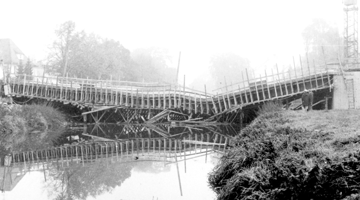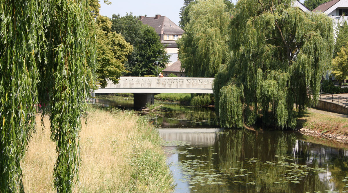 Bünde ist die Stadt der Brücken, man kann die Else elf Mal überqueren. Die Theodor-Heuss-Brücke war lange Zeit ein einfacher Holzsteg. Anfang der 1970 er Jahre war sie nicht mehr verkehrssicher und wurde gesperrt. Beim Ausbau des Stadtkernrings wurde 1975 mit dem Bau einer großen Brücke begonnen. Der schlammige Untergrund machte eine Pfahlgründung notwendig. Kurz nach der Fertigstellung stürzte die Brückenplatte in die Else. Bevor die Brückenarbeiten wieder aufgenommen werden konnten, musste das ganze Flussbett geräumt werden. Erst Ende 1976 konnte die Brücke freigegeben werden.
