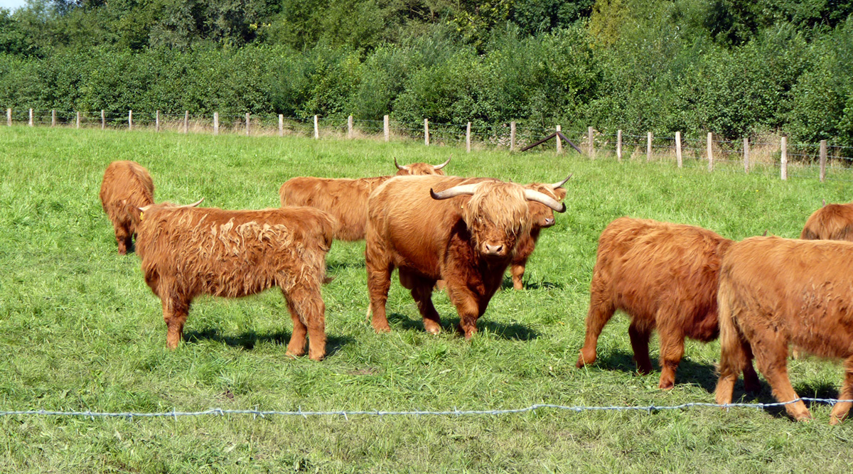 Seit 2015 unterstützen Schottische Hochlandrinder die Pflege des extensiven Grünlands und fördern das Strukturreichtum der Flächen. Sie sorgen besonders im Frühjahr, wenn die kleinen Kälber ihre ersten Tage im Freien verbringen, für besonders schöne Fotomotive.