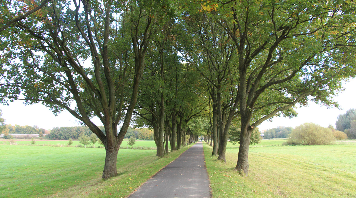 Um Gebäude vor Flusswasser zu schützen, wurden ungefähr schon 2.000 Jahre vor unserer Zeitrechnung die ersten Deiche gebaut, meist um Gebäude herum. Viel später erst hat man Deiche entlang der Gewässer gebaut, um sie zu kanalisieren. Auf einem solchen Deich kann man heute entlang der Else unter einer schönen Eichenallee entlangwandern.