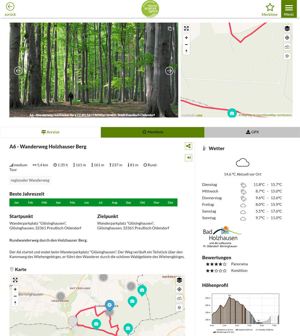 Der A6 startet und endet beim Wanderparkplatz "Glösinghausen". Der Weg verläuft ein Teilstück über den Kammweg des Wiehengebirges, er führt den Wanderer durch die schönen Waldgebiete des Wiehengbirges.