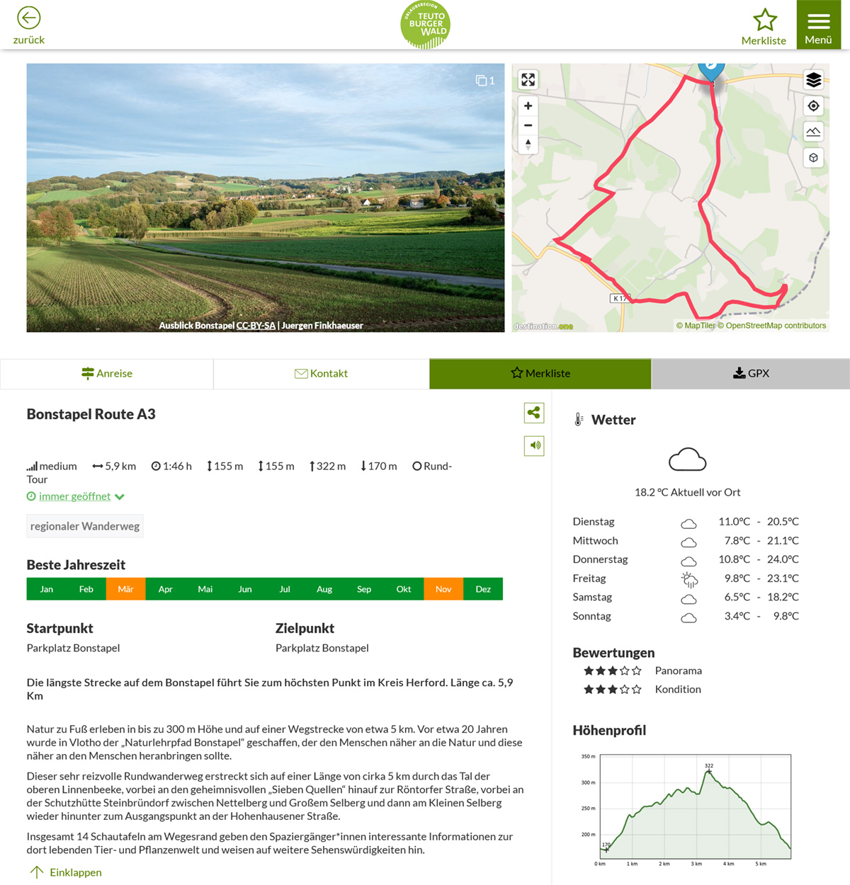 Die längste Strecke auf dem Bonstapel führt Sie zum höchsten Punkt im Kreis Herford. Länge ca. 5,9 Km