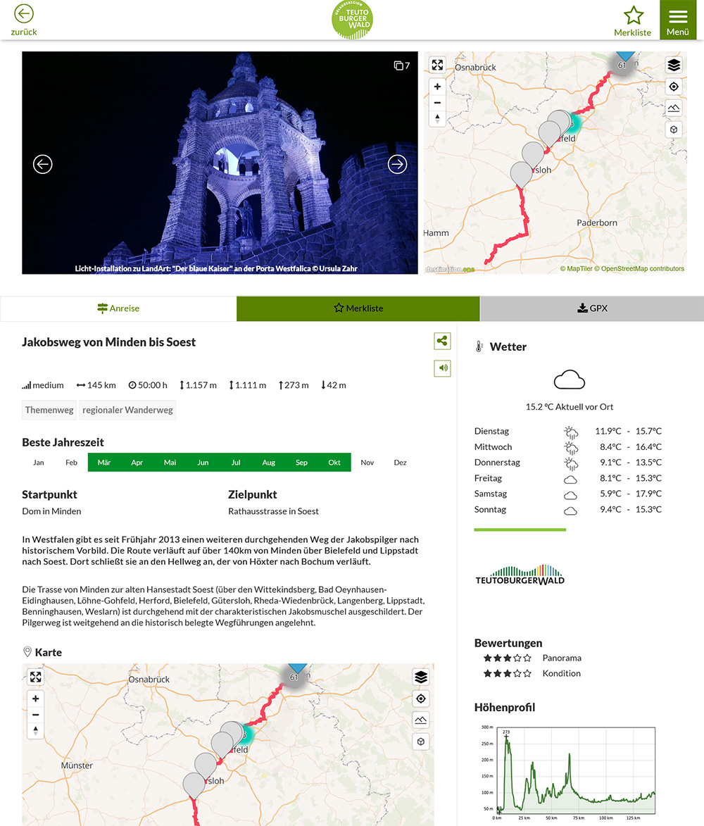 Selbstverständlich können Sie auch kürzere Etappen des Jakobswegs wandern, zum Beispiel die 22,6 km lange Route von Herford nach Bielefeld.