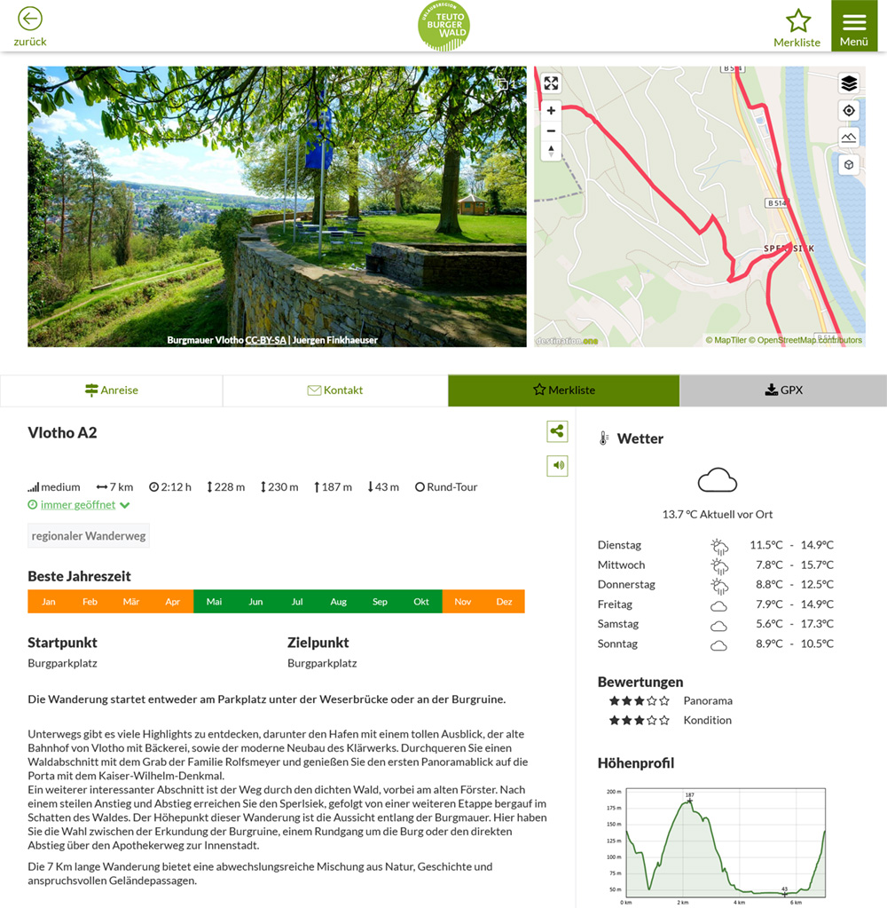 Unterwegs gibt es viele Highlights zu entdecken, darunter den Hafen mit einem tollen Ausblick, der alte Bahnhof von Vlotho mit Bäckerei, sowie der moderne Neubau des Klärwerks. Durchqueren Sie einen Waldabschnitt mit dem Grab der Familie Rolfsmeyer und genießen Sie den ersten Panoramablick auf die Porta mit dem Kaiser-Wilhelm-Denkmal.
