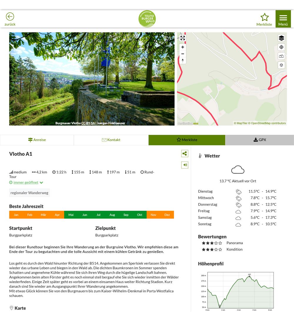 Bei dieser Rundtour beginnen Sie Ihre Wanderung an der Burgruine Vlotho. Wir empfehlen diese am Ende der Tour zu begutachten und die tolle Aussicht mit einem kühlen Getränk zu genießen.