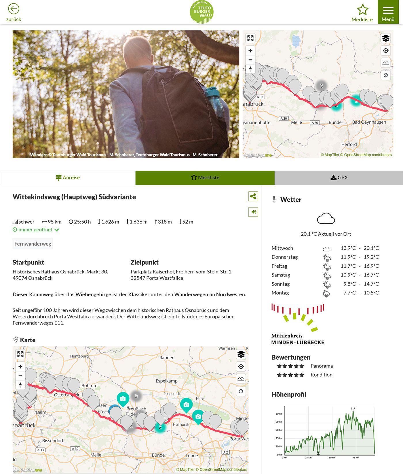 Seit ungefähr 100 Jahren wird dieser Weg zwischen dem historischen Rathaus Osnabrück und dem Weserdurchbruch Porta Westfalica erwandert. Der Wittekindsweg ist ein Teilstück des Europäischen Fernwanderweges E11.