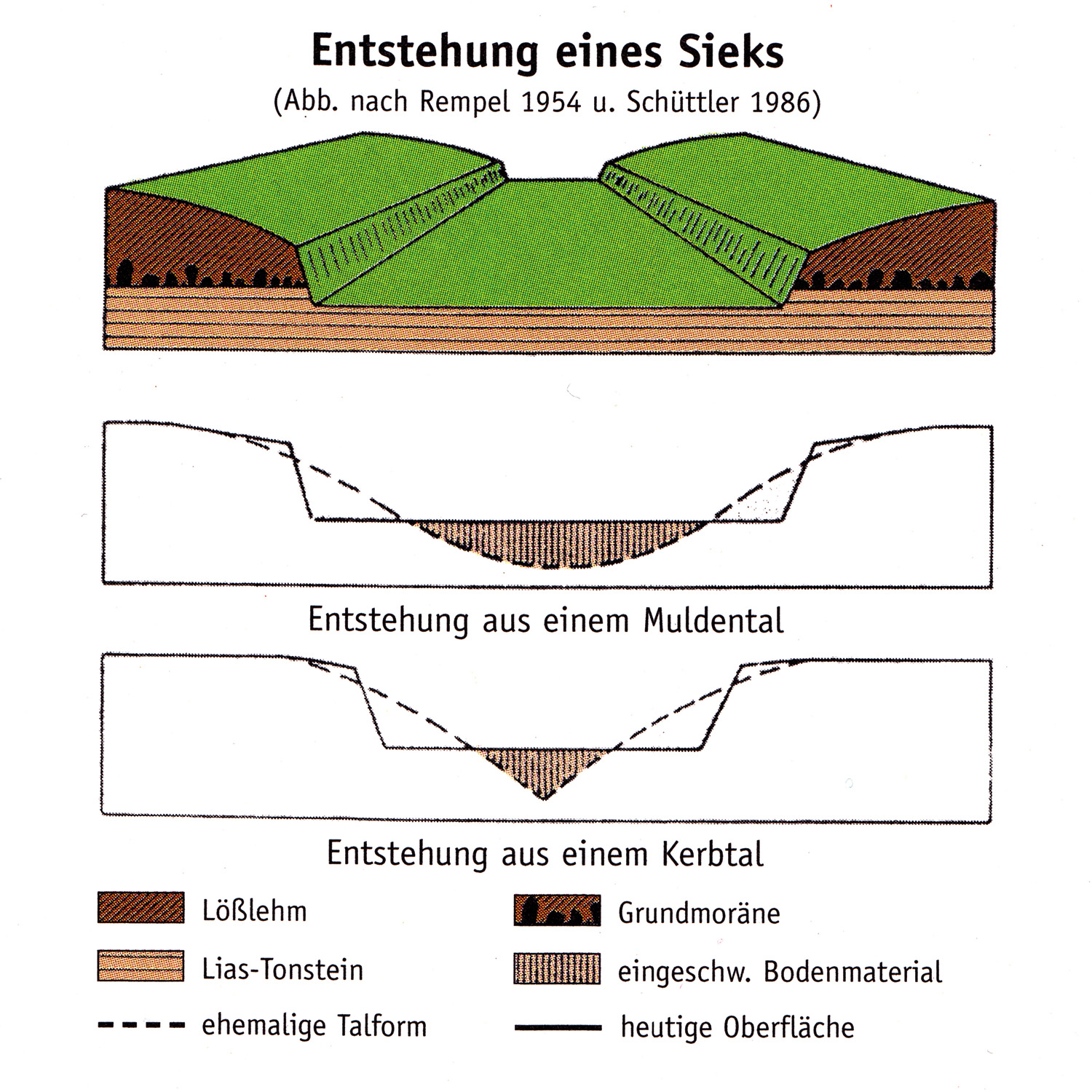 Der Begriff Siek stammt aus dem althochdeutschen und kann ein feuchtes, meist bachbegleitetes Wiesental bezeichnen oder steht einfach für „niedrig“ (niederdeutsch: „suige“). Besonders typisch ist diese Landschaftsform im Ravensberger Hügelland, wo sich aus natürlichen Erosionsrinnen in den schweren Lössböden nutzbare Senken entwickelten.
