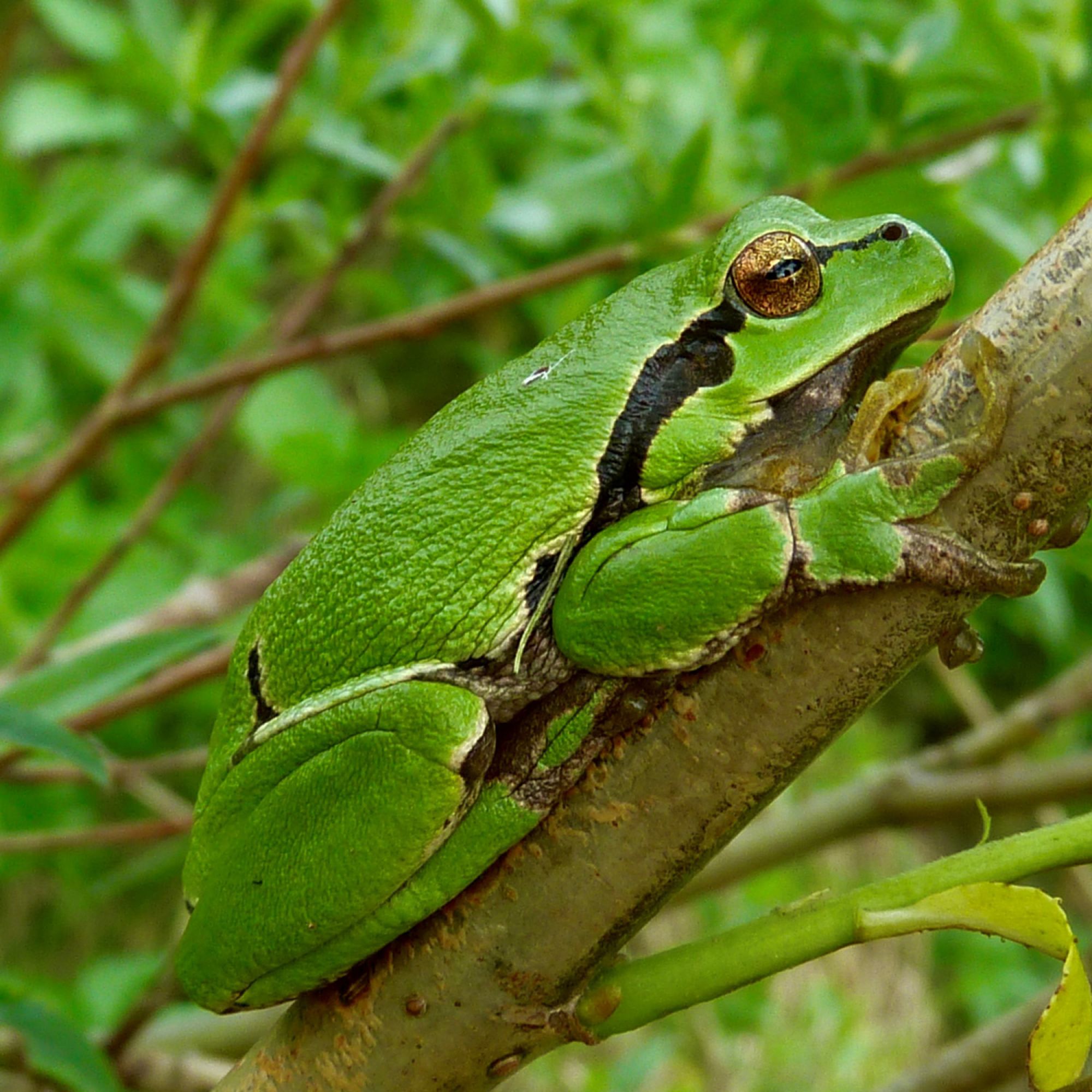 Die kleinen, smaragdgrünen Laubfrösche lieben warme, vegetationsreiche Tümpel mit flachen Ufern. Rötekuhlen bieten genau das: sonnige Wasserflächen, stilles Wasser und nahegelegene Heckenstrukturen. In vielen Gebieten zählen sie heute zu den wichtigsten Laichhabitaten.