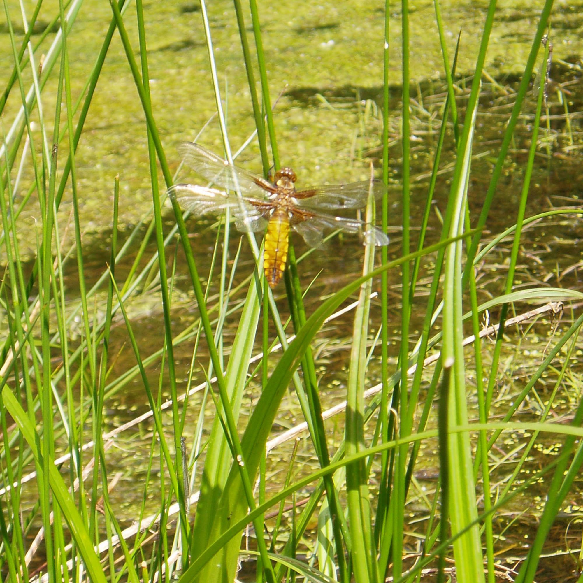 Auch Libellen profitieren heute von diesen besonderen Biotopen. Arten wie Blaugrüne Mosaikjungfer, Gemeine Heidelibelle oder Vierfleck finden hier perfekte Bedingungen: ruhiges Wasser, Schilfinseln und sonnige Jagdflächen. Rötekuhlen gelten deshalb als Hotspots für Libellenvielfalt.